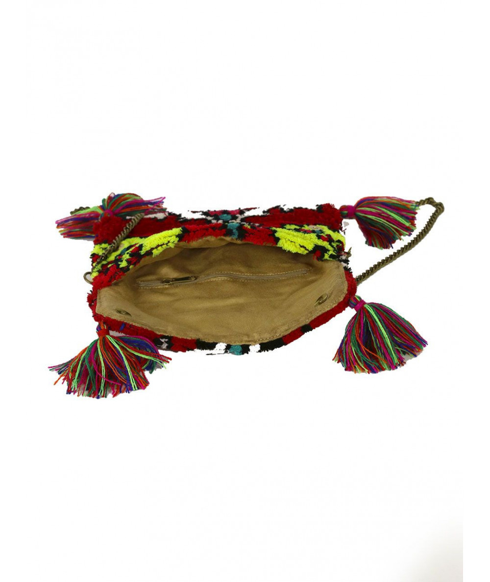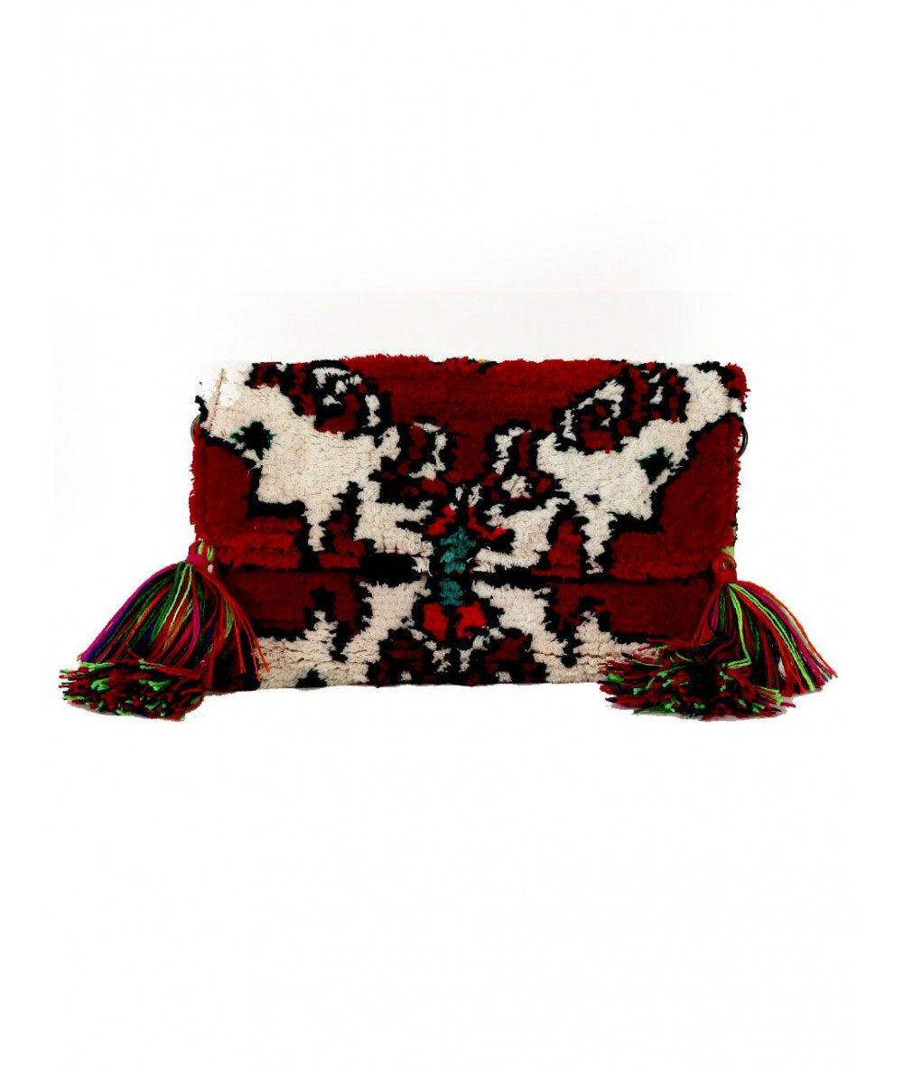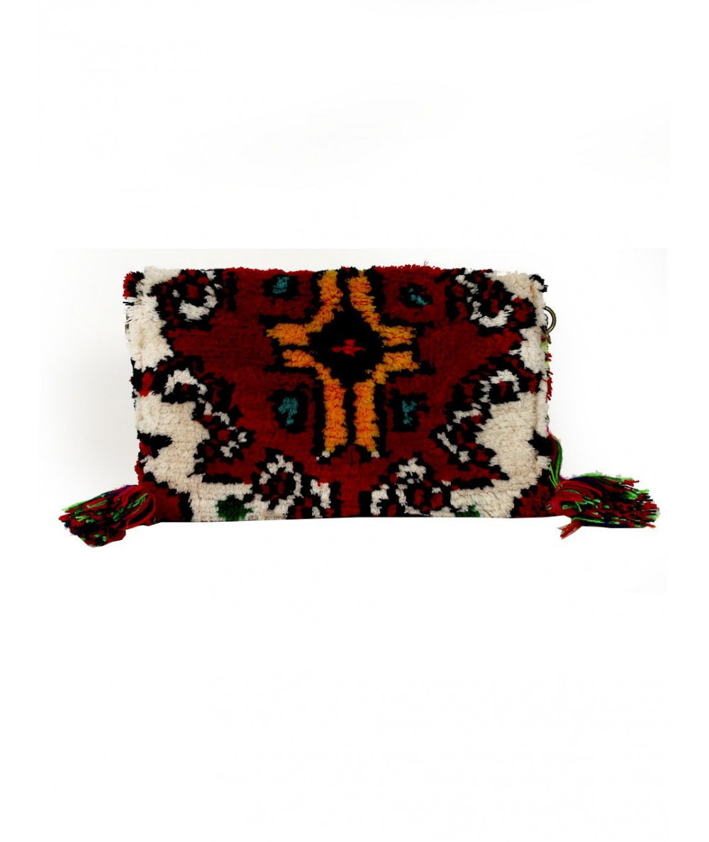 Unique pouch bag to accompany your evening outfits, our Biyadina pouches in real Berber rugs, the patterns of our Kilims are carefully chosen to respect the spirit of the Moroccan rug, and to honor the identity of Moroccan Berber rugs, with their flamboyant colors and their geometric patterns from a thousand-year-old heritage.